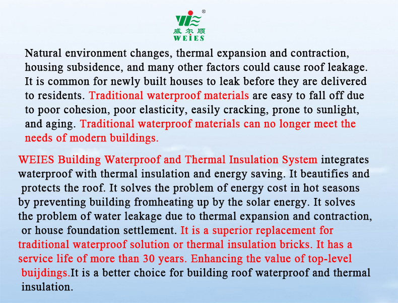 WEIES products include Anti-sun Thermal Insulating Paint , Reflective Thermal Insulation Coating,Waterproof Rubber , Waterproof Coating , Waterborne Floor Paint , Waterborne Antirust Priming Paint ,Thermal Insulation Coating and more.
